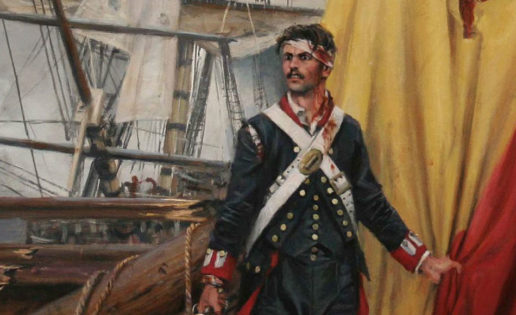 […] Un nuevo oficial y soldados se acercan y el centinela no logrando desasir su sable de donde se hallaba pinchado, coge el fusil a modo de maza y con él da muerte a otro oficial y hiere a dos soldados. Da después un salto desde la toldilla para caer sobre el alcázar de popa donde lo acribillan a tiros los ingleses. Nelson que ha presenciado la escena se aproxima al cadáver silencioso Y ordena que se le envuelva en la bandera que había defendido con tanto ardor».