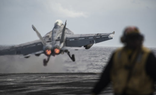 Para empezar el año con energía os dejo estos dos vídeos filmados desde la cubierta del portaaviones estadounidense “Dwight D. Eisenhower”, que estuvo desplegado siete meses en la zona del Golfo y el Mediterráneo en operaciones de bombardeo contra Daesh.