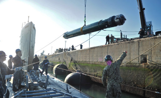 En las imágenes, se observa cómo se traslada un torpedo MK-48 de entrenamiento («inerte», es el término que emplean) desde el muelle al interior del submarino de la «clase Virginia», en servicio en la Marina estadounidense desde 2004. EE.UU. tiene actualmente 12 unidades, del total de 31, de esta clase de submarinos que reemplazará progresivamente a la «clase Los Ángeles».