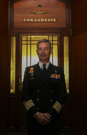 El capitán de navío Alejandro Cuerda Lorenzo (Cádiz, 1965) es desde hace seis meses el comandante de la Flotilla de submarinos de la Armada Española. También es el jefe de la Base y de la Escuela de Submarinos, situadas en el Arsenal de Cartagena. Fue comandante del submarino S-62 Tonina de 2003 a 2005.