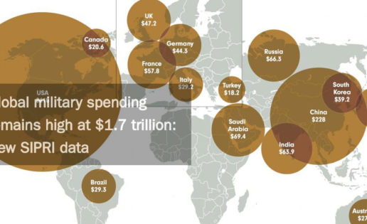 El Stockholm International Peace Research Institute (SIPRI) ha publicado esta semana su informe anual sobre gasto militar mundial, que en 2017 alcanzó los 1.739 billones de dólares, con un incremento del 1,1% respecto al año anterior,