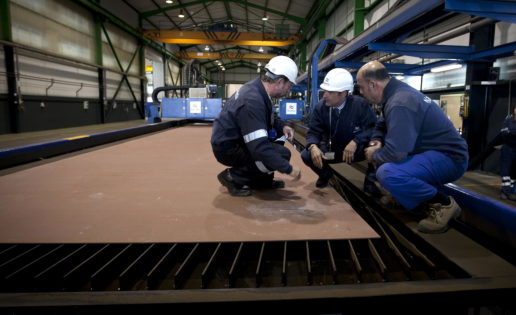 El astillero público Navantia comenzó este viernes el corte de chapa -«corte del primer acero», de los dos Buques de Acción MarÃtima (BAM). El corte aconteció simultáneamente en los astilleros de la BahÃa de Cádiz y Ferrol.