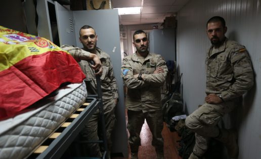 “Se pegan tiros, sí. Unos pocos tiros se pegan”, asienten en su habitación. Los fusiles apoyados en un lateral. Cascos y chalecos antibalas. Alguna revista, una bandera de España en la litera. “Aquí la vida es como en la calle, con unos te llevas mejor que con otros”, asiente el cabo Moreira.