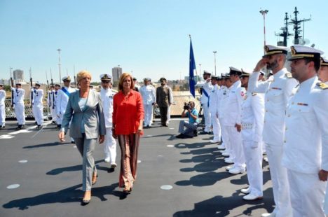 Cospedal, quien conversó con los miembros de la dotación del «Cantabria», subrayó también el componente «humanitario» de la misión europea: «Algo para sentirse muy orgullosos». También quiso destacar el compromiso español con «la defensa y la seguridad de Europa y con el modelo de convivencia, libertad y democracia».