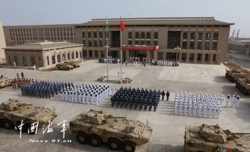 China comenzó la construcción de la base logística en Yibuti en 2016. El acuartelamiento será utilizado para reabastecer a buques que de misiones de mantenimiento de la paz y de operaciones humanitarias particularmente en las costas de Yemen y Somalia.