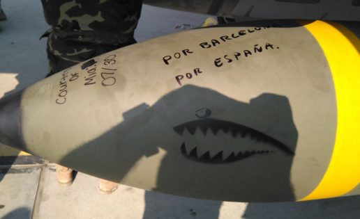 «Por Barcelona Por España», reza el mensaje que se ha puesto en una de las bombas que luego fueron arrojadas por este tipo de avión especializado en el ataque a tierra.