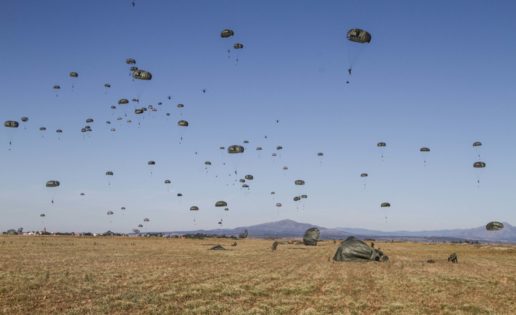 La Brigada «Almogávares» VI de Paracaidistas (Bripac) ha desarrollado este lunes, en las inmediaciones de la localidad de El Cubillo de Uceda (Guadalajara), un salto paracaidista de 200 efectivos a bordo de once helicópteros Chinook de las Fuerzas Aeromóviles del Ejército de Tierra (Famet). Se trata de uno de los mayores ejercicios de salto de los últimos años.