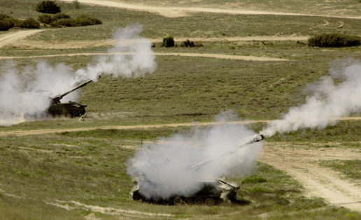 El teniente coronel Dueñas nos ilustra con pasión sobre esas piezas de artillería durante las maniobras en San Gregorio. Nos da la pista del Sáhara Occidental y nos explica la dureza de esas barcazas y sus orugas… las mismas que se desplegaron el Sáhara Occidental. Como todo el material estadounidense, «es muy resistente».
