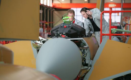 «En 80-85 días podemos tener un avión Eurofighter totalmente testado en la fábrica, siendo entregado en un plazo de 245 al cliente», explica Niels Michael, jefe de producción de la planta de Manching, quien reconoce que «en los mejores días de la producción del avión se ensamblaban 18-19 aviones en la fábrica, mientras que ahora son 10 aviones al año. Hemos ralentizado la producción».