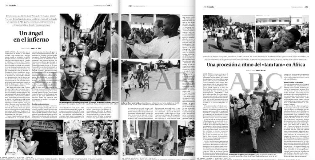 Reportaje a tres páginas publicado en ABC Córdoba sobre la labor de César Fernández y los misioneros salesianos en Togo.