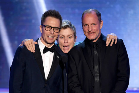 Desde que no me quedo a ver la gala de entrega de los Oscar, estoy más contento al día siguiente y ya no pienso que me han quitado algo a mí cuando no han elegido a alguno de mis favoritos. De los premiados de este año, aunque en general no son los que yo hubiera elegido, me parecen todos merecedores de su estatuilla. Lo que más me ha costado aceptar, apenas nada, ha sido el premio al mejor actor secundario para Sam Rockwell en vez de a Woody Harrelson. Supongo que Woody Harrelson y yo opinamos lo mismo, pero no tiene la menor importancia, al menos para mí. aunque hay algo en el gesto de Harrelson en esta foto que me hace sospechar que para él SÍ: